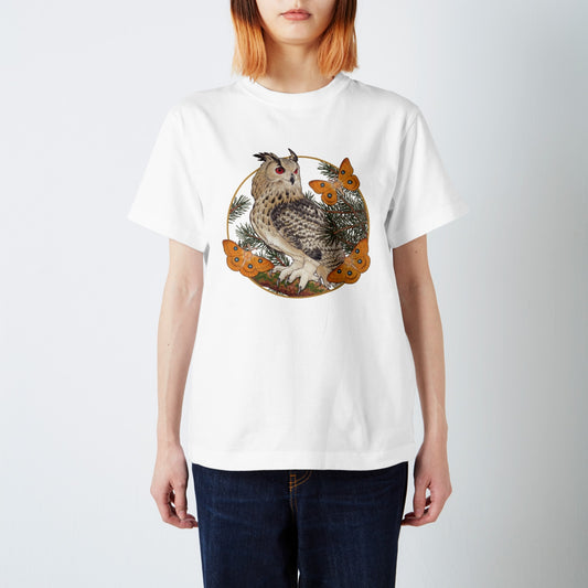 Eagle owl and Pine tree -7.5oz heavy cotton T-shirts